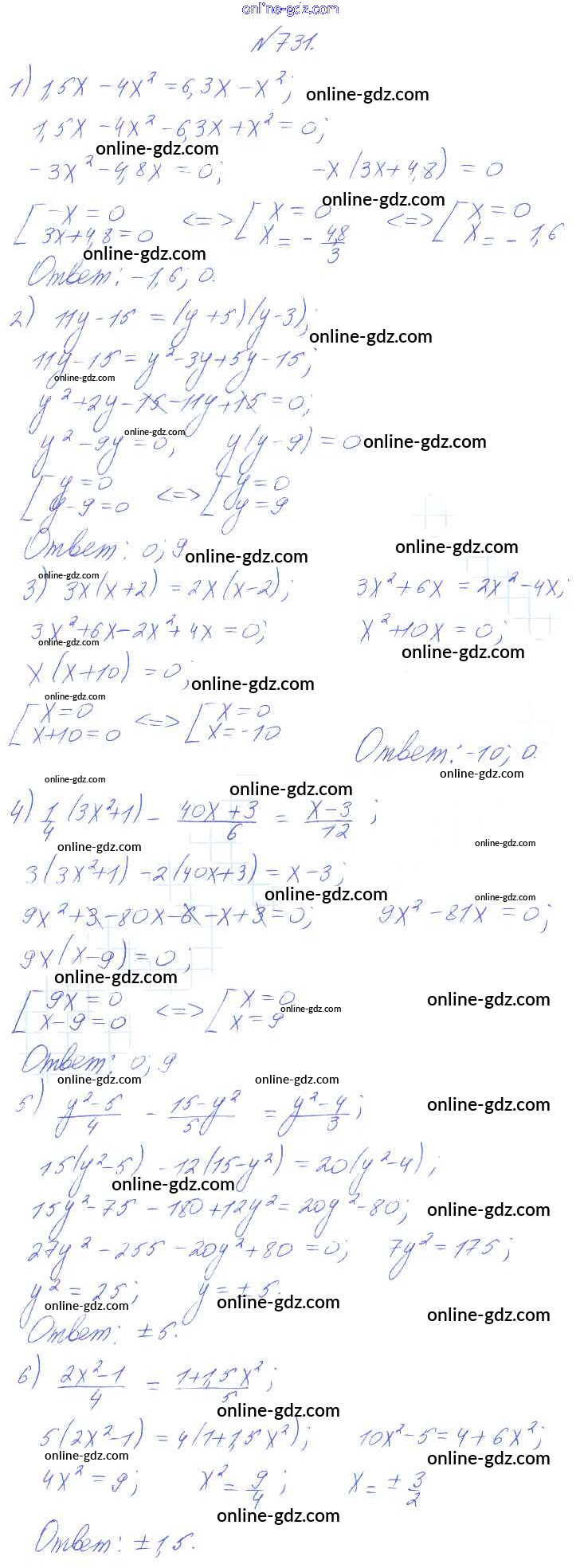 Готовые домашние задания по Алгебре за 8 класс Учебник Алимов, Колягин 2014 - Упражнения 731