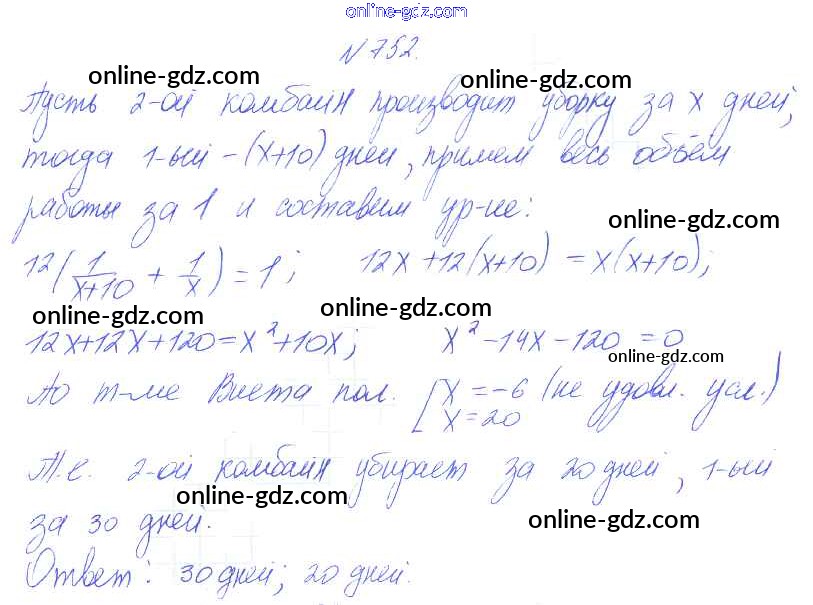 Готовые домашние задания по Алгебре за 8 класс Учебник Алимов, Колягин 2014 - Упражнения 752