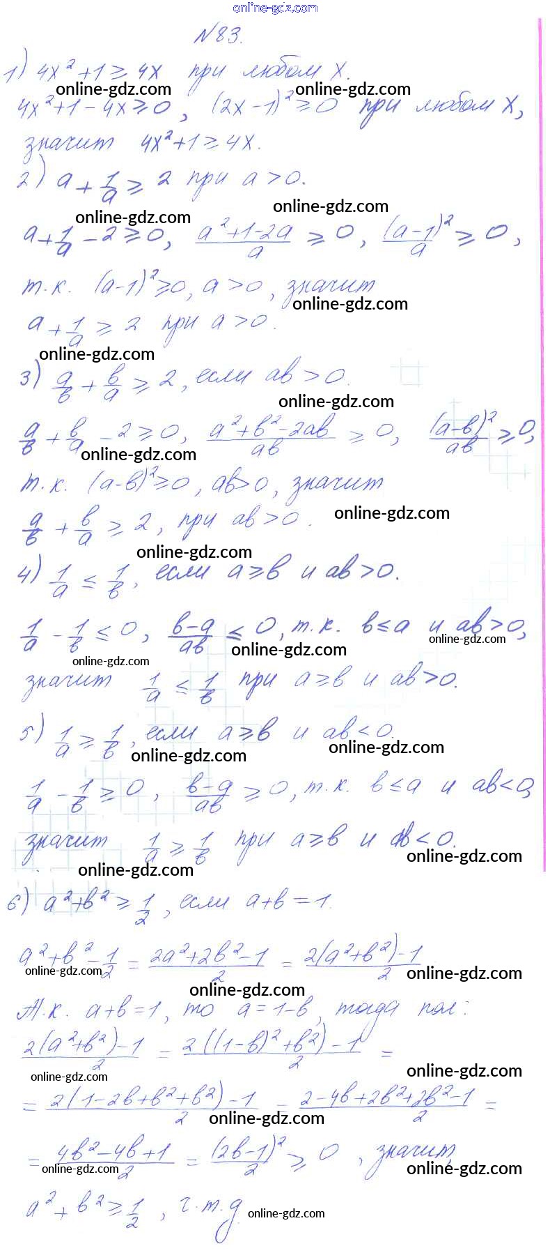 Готовые домашние задания по Алгебре за 8 класс Учебник Алимов, Колягин 2014 - Упражнения 83