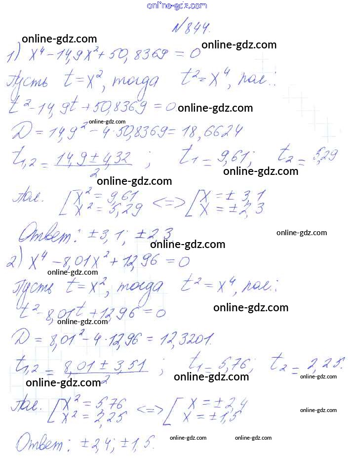 Готовые домашние задания по Алгебре за 8 класс Учебник Алимов, Колягин 2014 - Упражнения 844