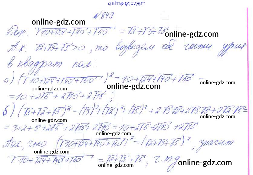 Готовые домашние задания по Алгебре за 8 класс Учебник Алимов, Колягин 2014 - Упражнения 849