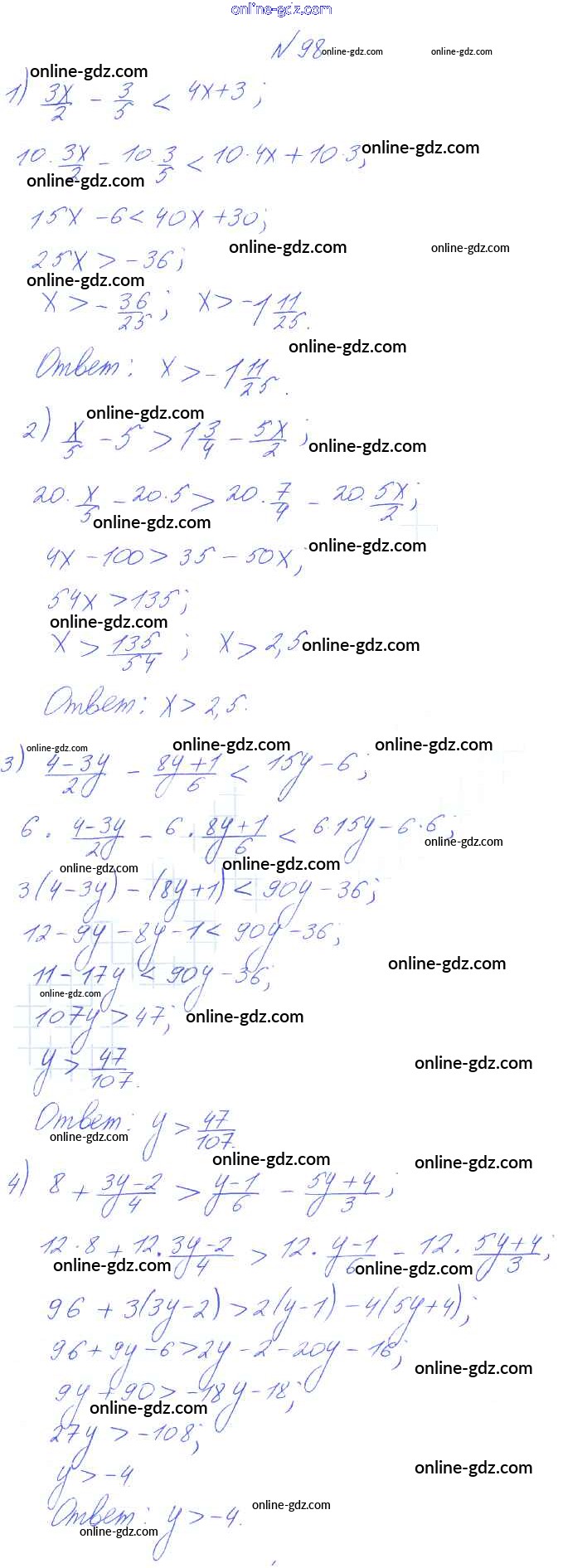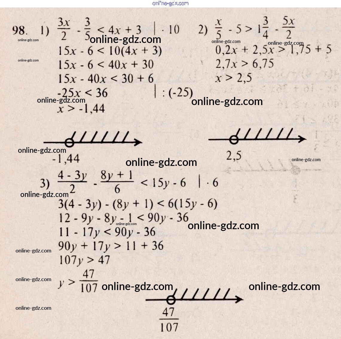 Готовые домашние задания по Алгебре за 8 класс Учебник Алимов, Колягин 2014 - Упражнения 98