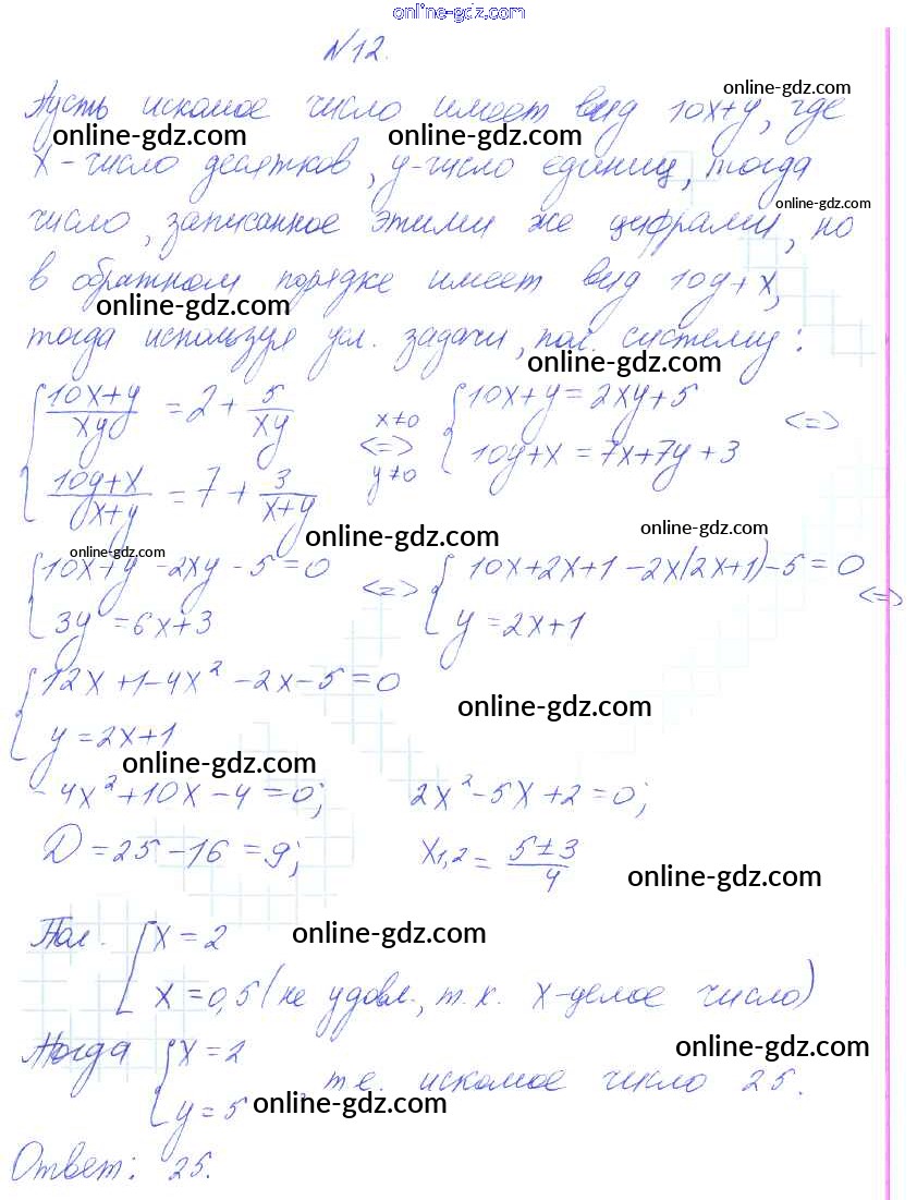 Готовые домашние задания по Алгебре за 8 класс Учебник Алимов, Колягин 2014 - Глава 4 Проверь себя 12
