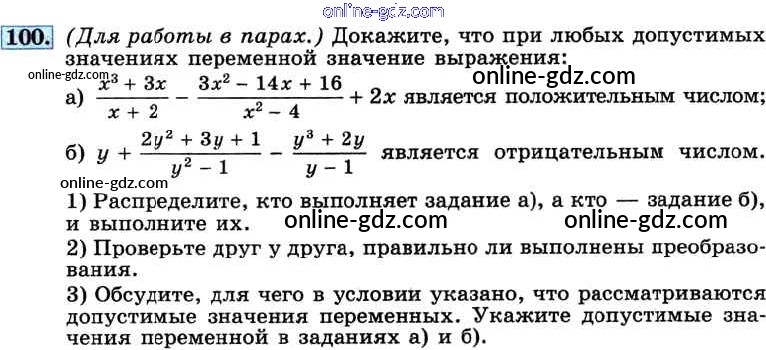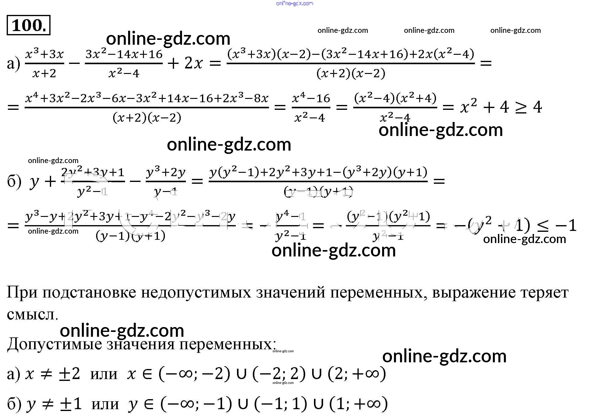 Готовые домашние задания по Алгебре за 8 класс Учебник Макарычев, Миндюк 2016 - Упражнения 100