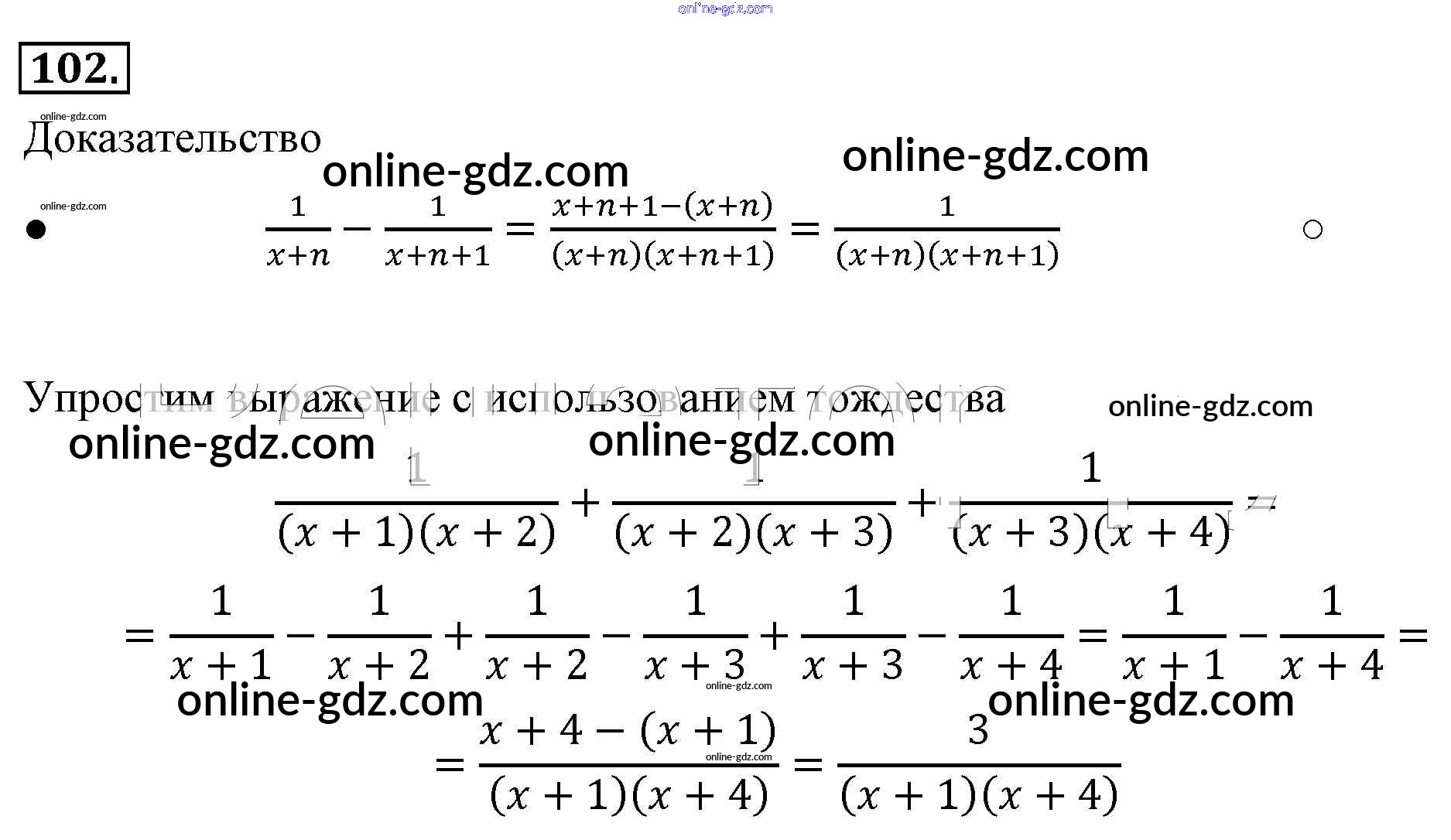 Готовые домашние задания по Алгебре за 8 класс Учебник Макарычев, Миндюк 2016 - Упражнения 102