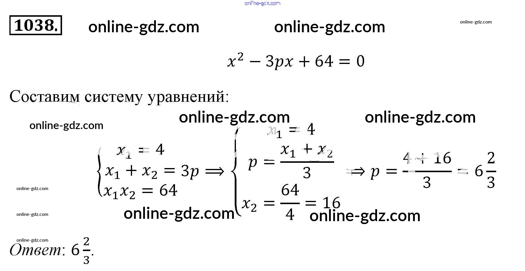 Готовые домашние задания по Алгебре за 8 класс Учебник Макарычев, Миндюк 2016 - Упражнения 1038