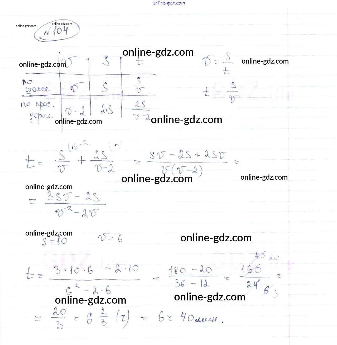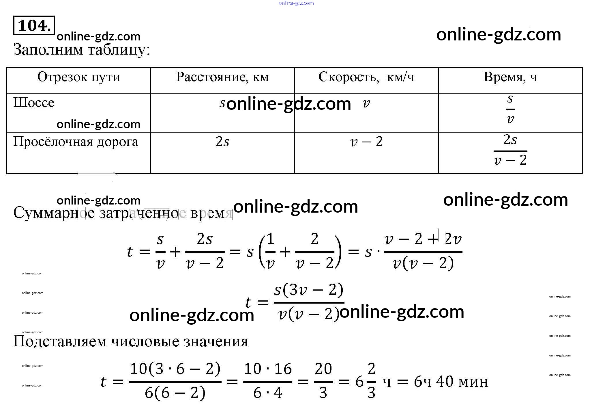 Готовые домашние задания по Алгебре за 8 класс Учебник Макарычев, Миндюк 2016 - Упражнения 104
