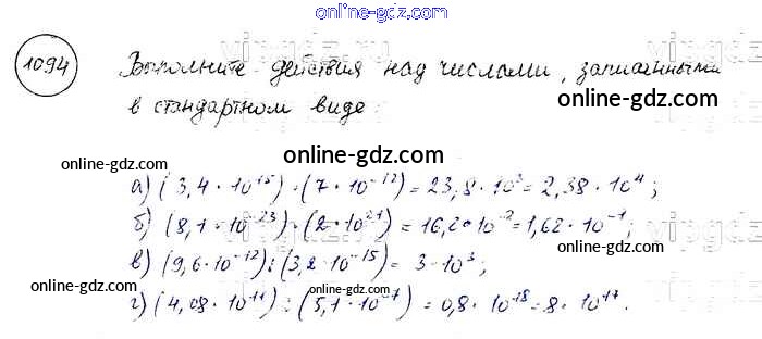 Готовые домашние задания по Алгебре за 8 класс Учебник Макарычев, Миндюк 2016 - Упражнения 1094