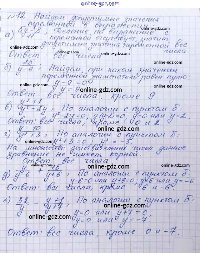 Готовые домашние задания по Алгебре за 8 класс Учебник Макарычев, Миндюк 2016 - Упражнения 12