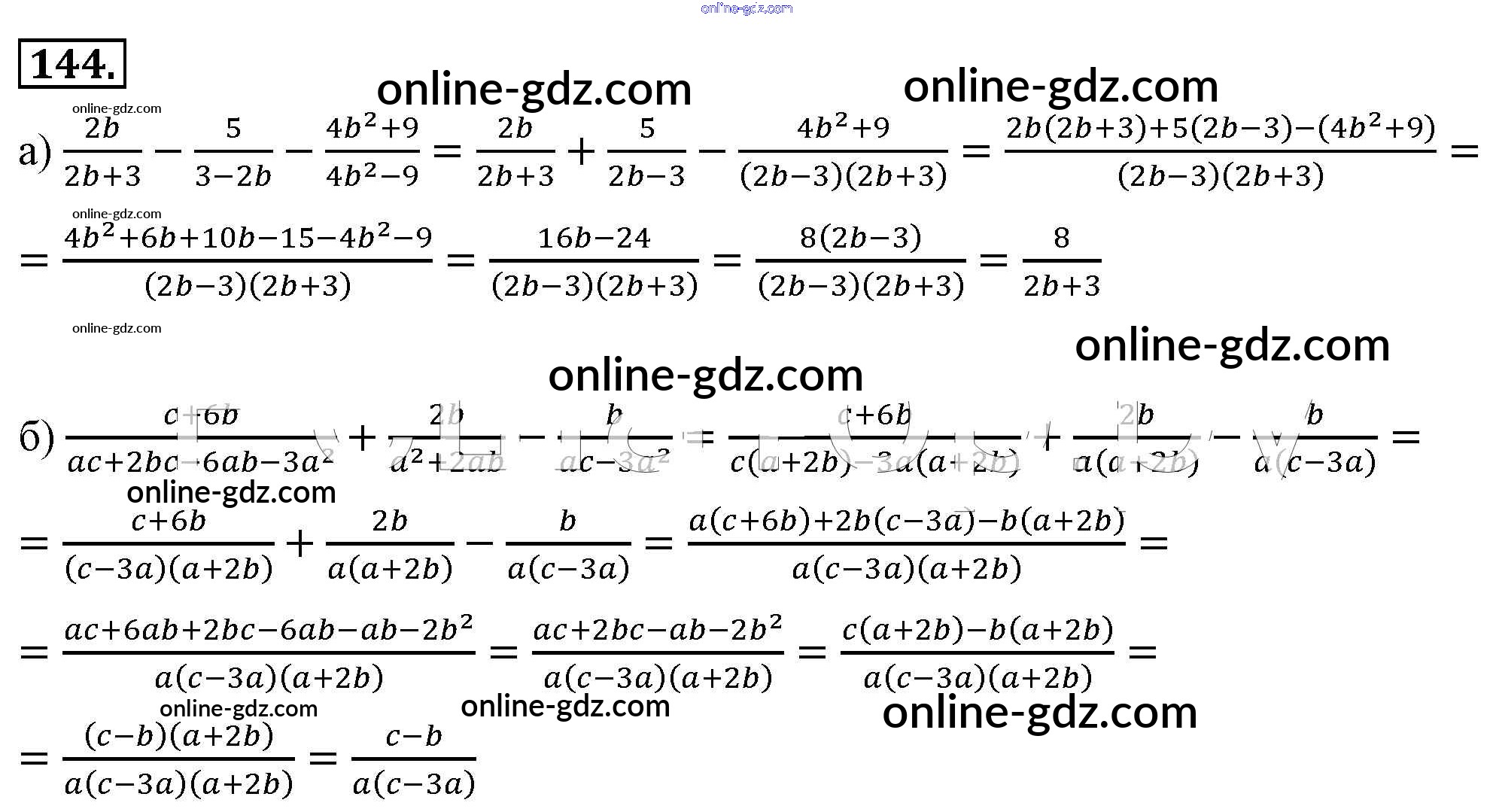 Готовые домашние задания по Алгебре за 8 класс Учебник Макарычев, Миндюк 2016 - Упражнения 144