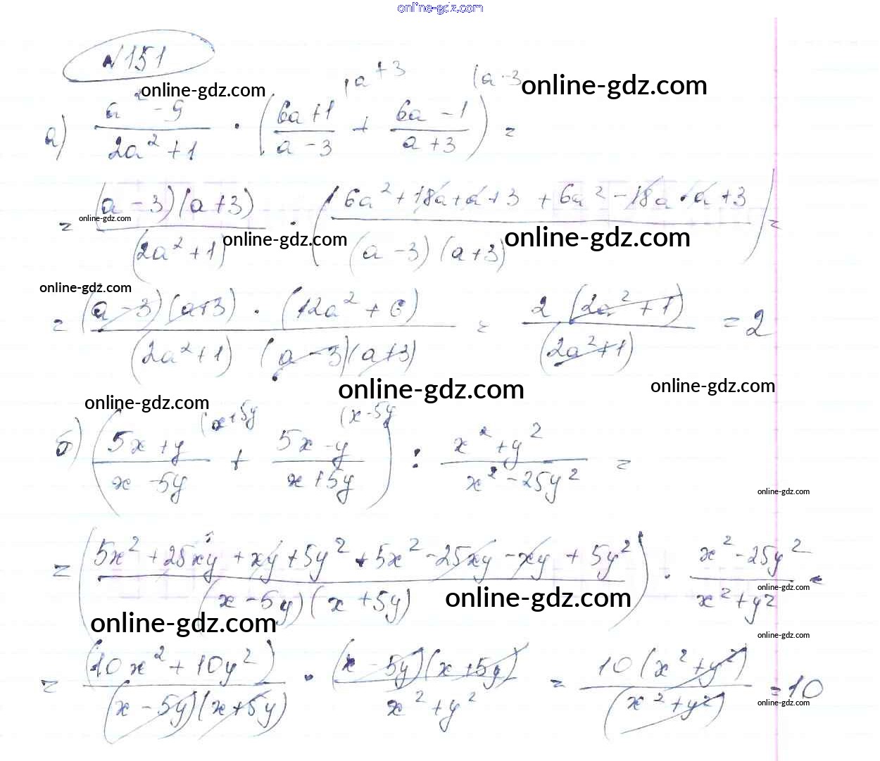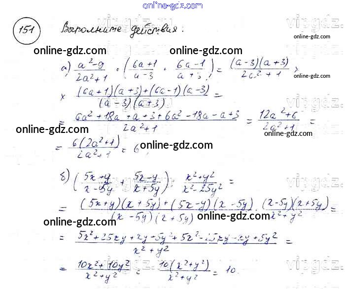 Готовые домашние задания по Алгебре за 8 класс Учебник Макарычев, Миндюк 2016 - Упражнения 151
