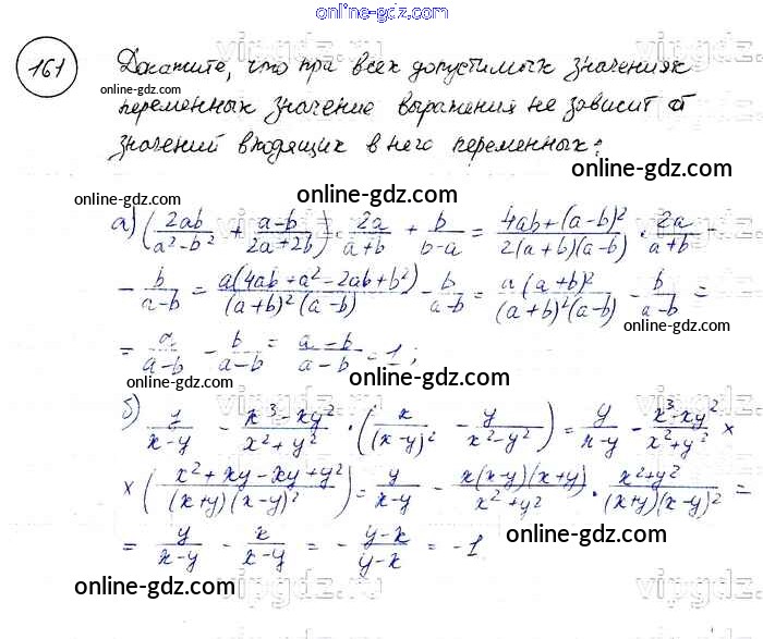 Готовые домашние задания по Алгебре за 8 класс Учебник Макарычев, Миндюк 2016 - Упражнения 161