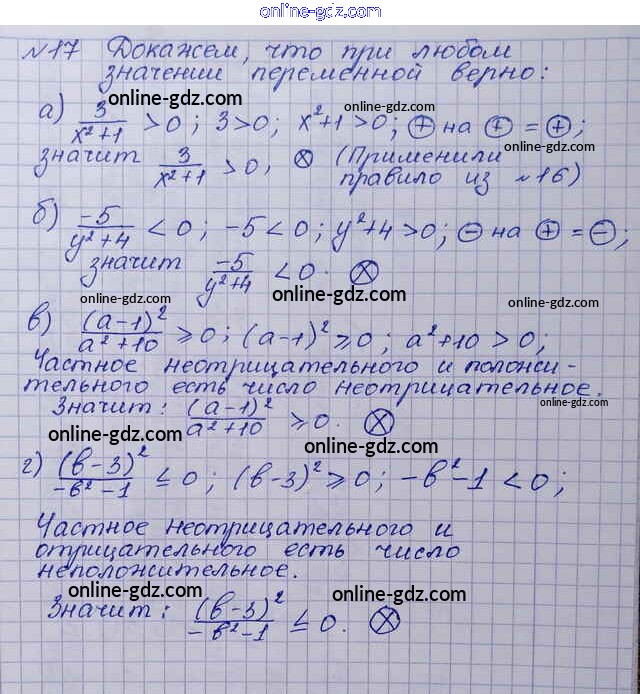 Готовые домашние задания по Алгебре за 8 класс Учебник Макарычев, Миндюк 2016 - Упражнения 17