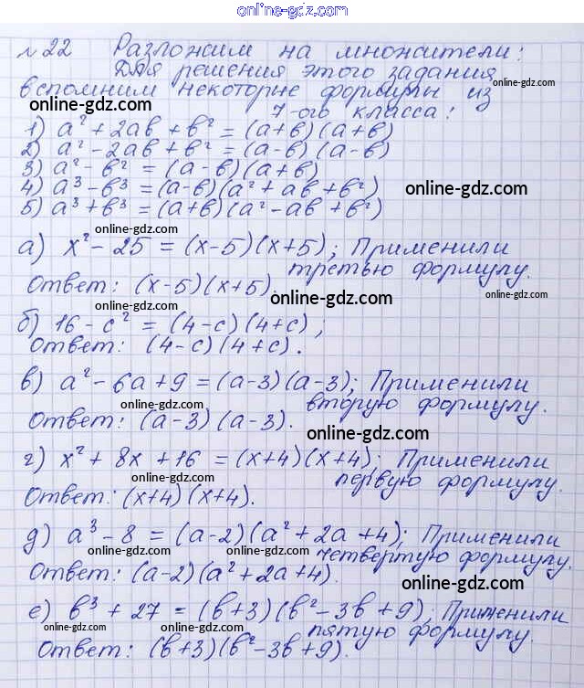 Готовые домашние задания по Алгебре за 8 класс Учебник Макарычев, Миндюк 2016 - Упражнения 22