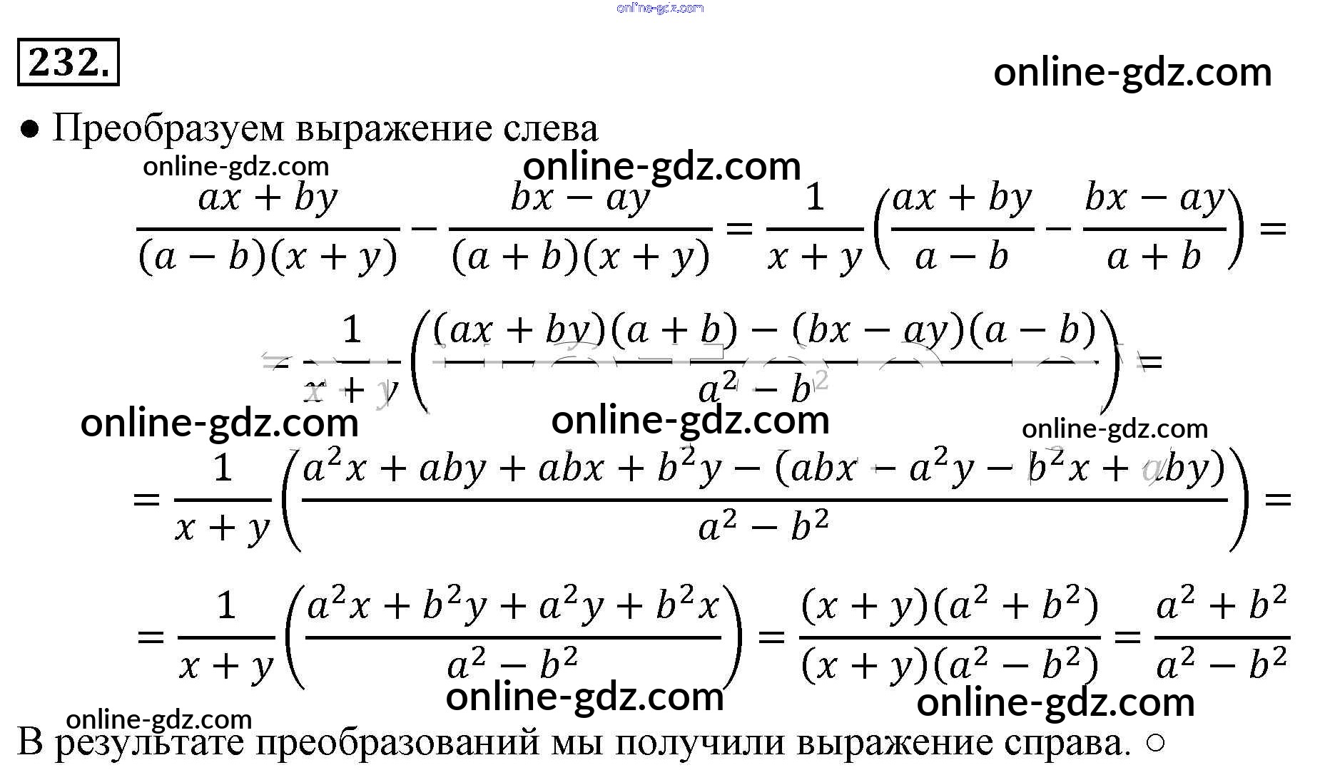 Готовые домашние задания по Алгебре за 8 класс Учебник Макарычев, Миндюк 2016 - Упражнения 232