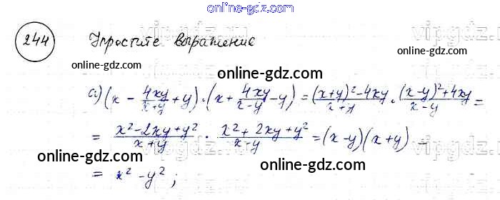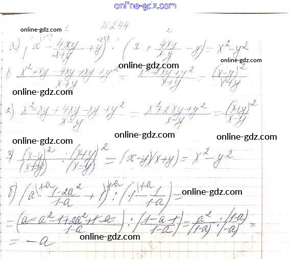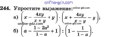 Готовые домашние задания по Алгебре за 8 класс Учебник Макарычев, Миндюк 2016 - Упражнения 244