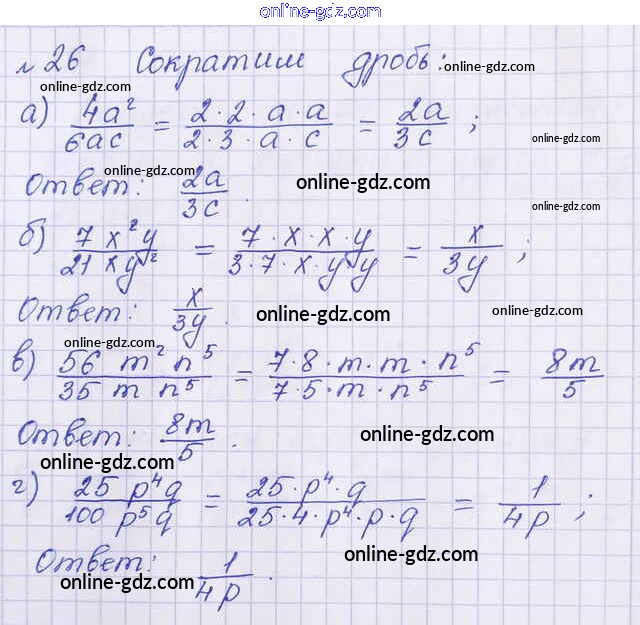 Готовые домашние задания по Алгебре за 8 класс Учебник Макарычев, Миндюк 2016 - Упражнения 26