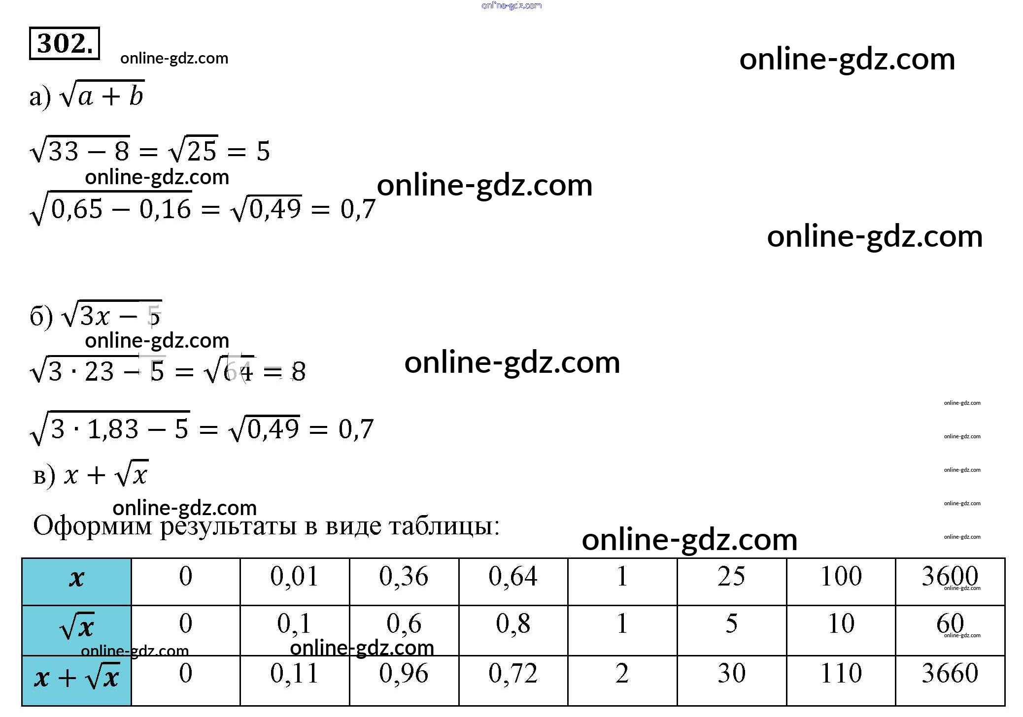 Готовые домашние задания по Алгебре за 8 класс Учебник Макарычев, Миндюк 2016 - Упражнения 302