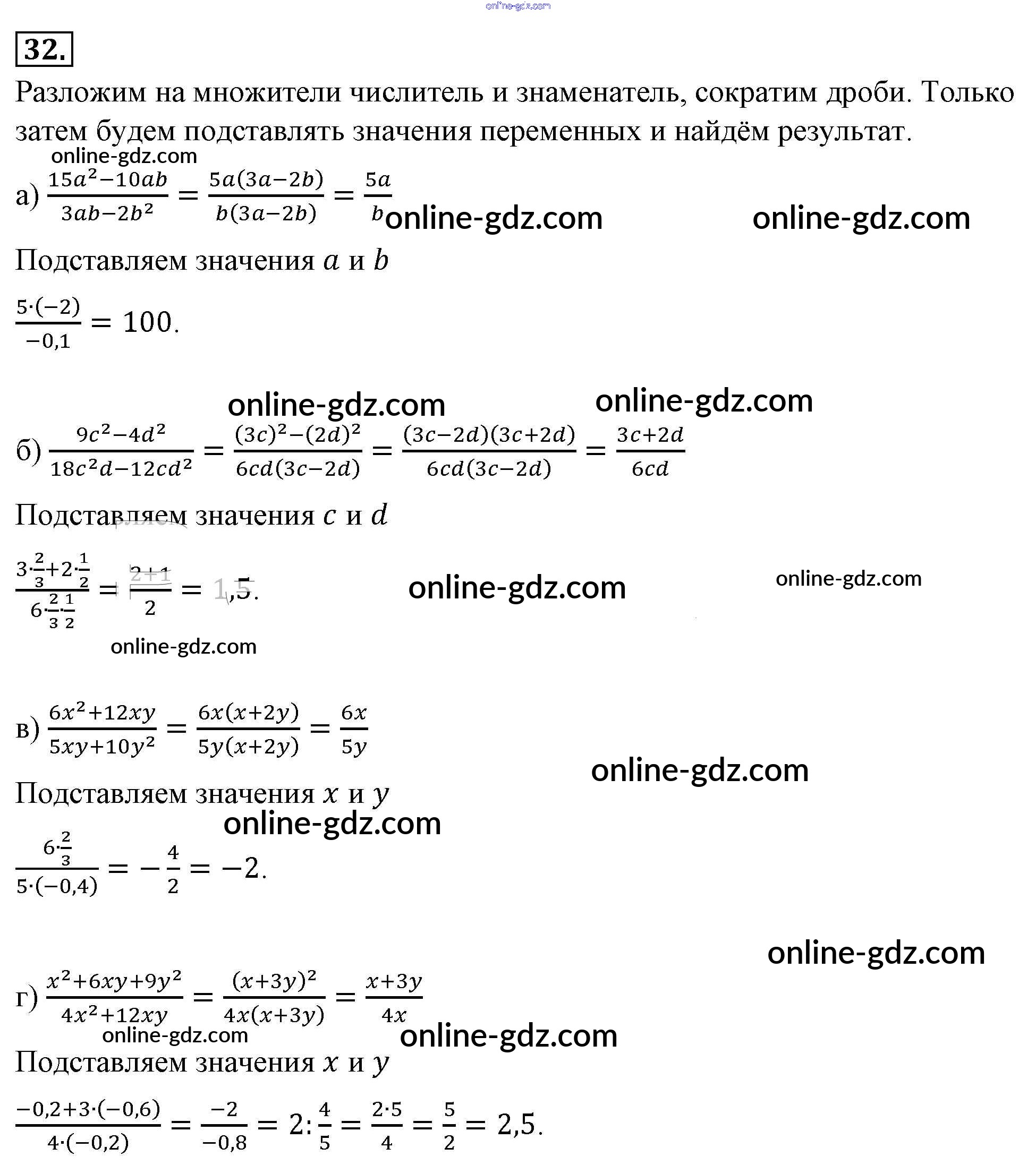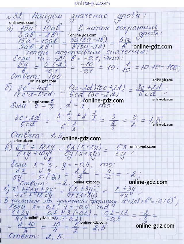 Готовые домашние задания по Алгебре за 8 класс Учебник Макарычев, Миндюк 2016 - Упражнения 32