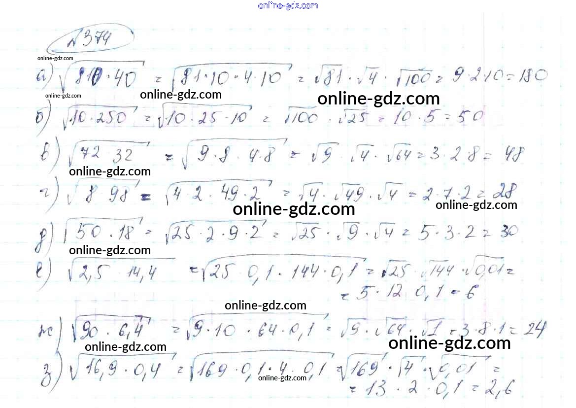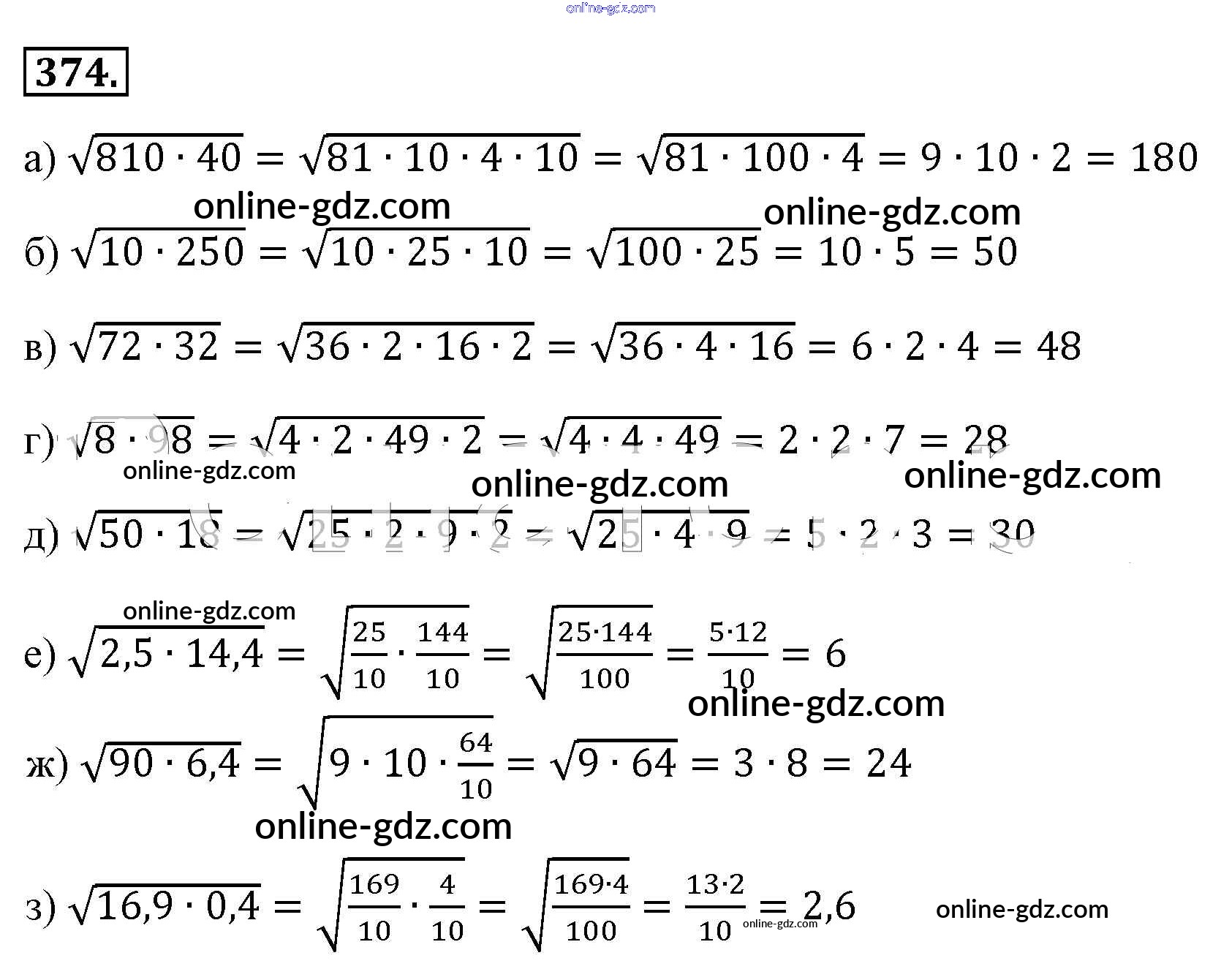Готовые домашние задания по Алгебре за 8 класс Учебник Макарычев, Миндюк 2016 - Упражнения 374