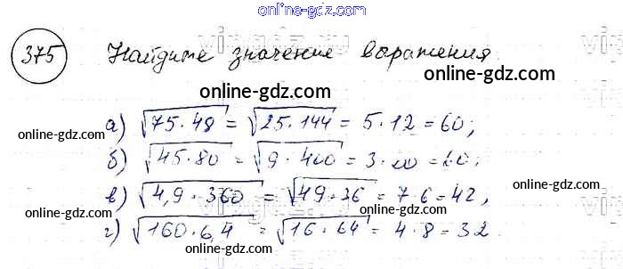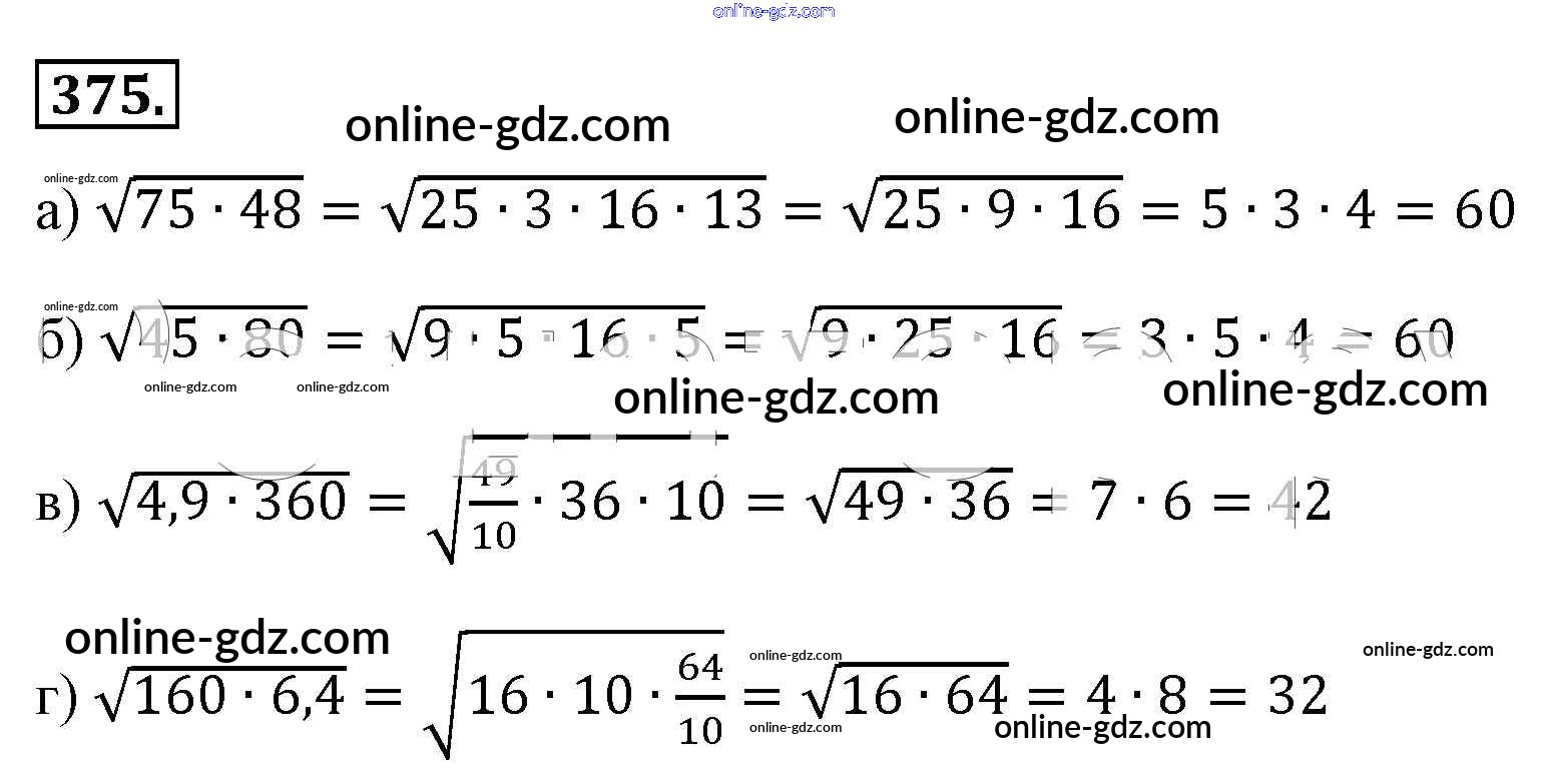 Готовые домашние задания по Алгебре за 8 класс Учебник Макарычев, Миндюк 2016 - Упражнения 375