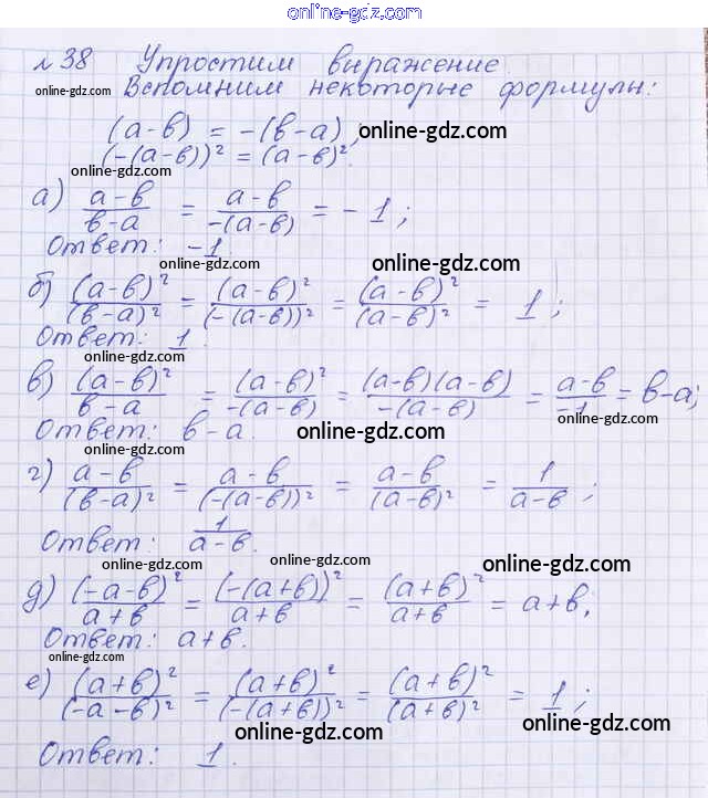 Готовые домашние задания по Алгебре за 8 класс Учебник Макарычев, Миндюк 2016 - Упражнения 38