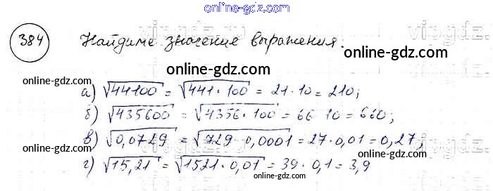 Готовые домашние задания по Алгебре за 8 класс Учебник Макарычев, Миндюк 2016 - Упражнения 384