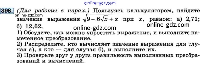Готовые домашние задания по Алгебре за 8 класс Учебник Макарычев, Миндюк 2016 - Упражнения 398