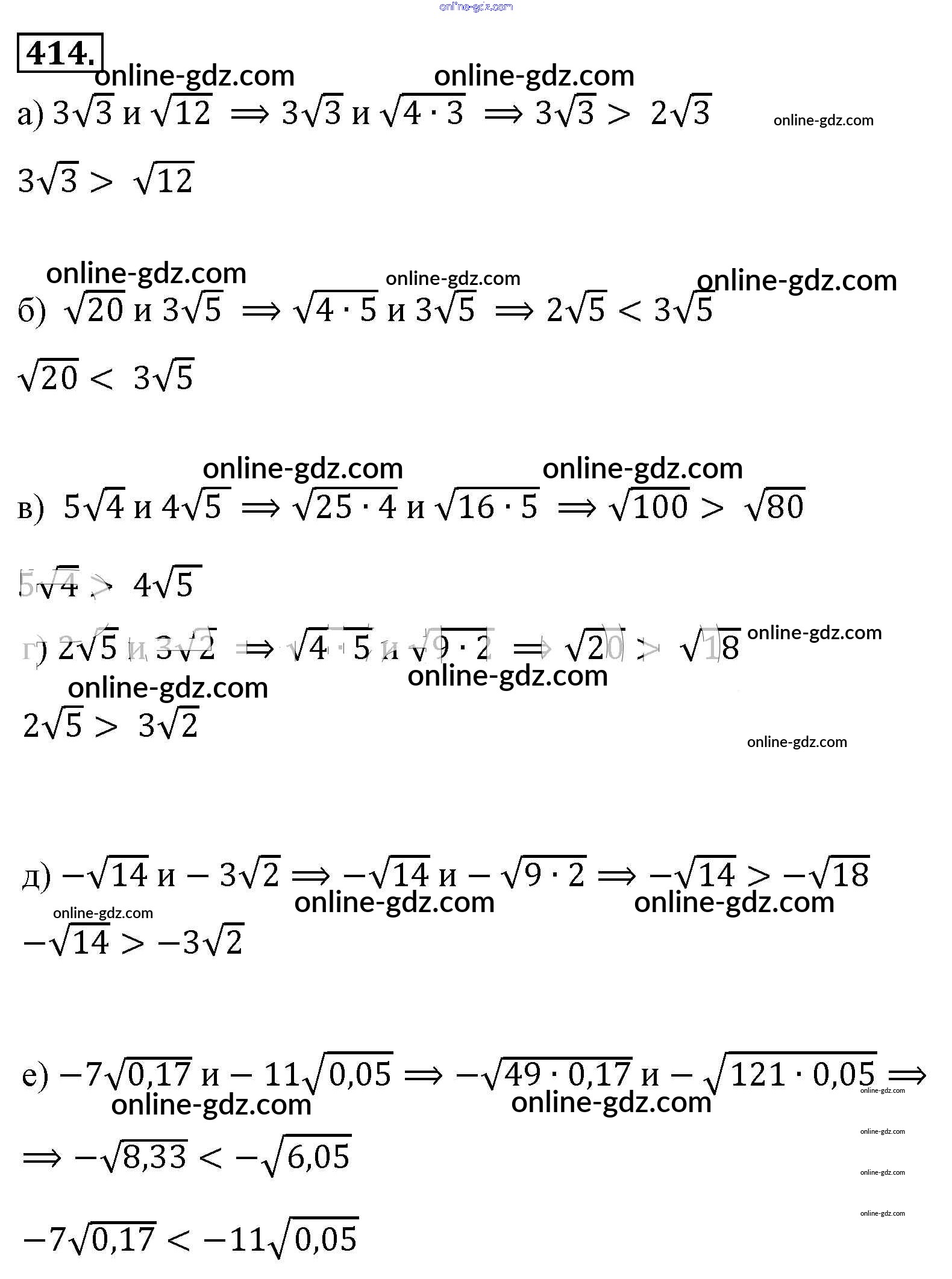 Готовые домашние задания по Алгебре за 8 класс Учебник Макарычев, Миндюк 2016 - Упражнения 414