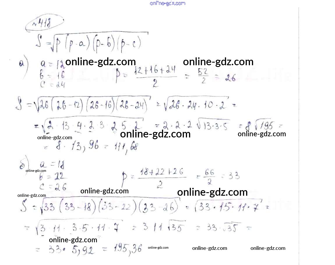 Готовые домашние задания по Алгебре за 8 класс Учебник Макарычев, Миндюк 2016 - Упражнения 418