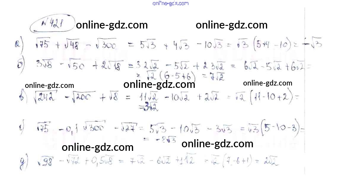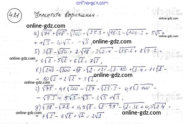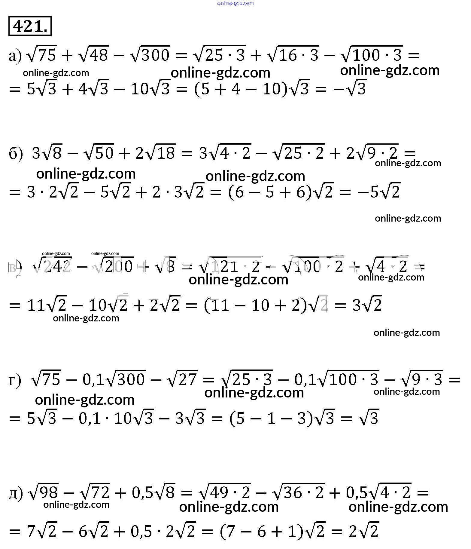 Готовые домашние задания по Алгебре за 8 класс Учебник Макарычев, Миндюк 2016 - Упражнения 421