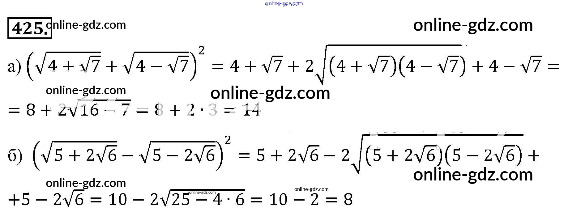 Готовые домашние задания по Алгебре за 8 класс Учебник Макарычев, Миндюк 2016 - Упражнения 425