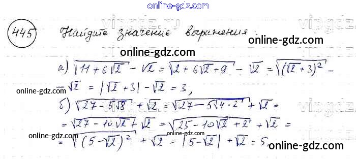 Готовые домашние задания по Алгебре за 8 класс Учебник Макарычев, Миндюк 2016 - Упражнения 445