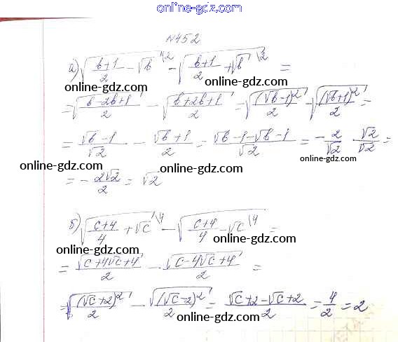 Готовые домашние задания по Алгебре за 8 класс Учебник Макарычев, Миндюк 2016 - Упражнения 452