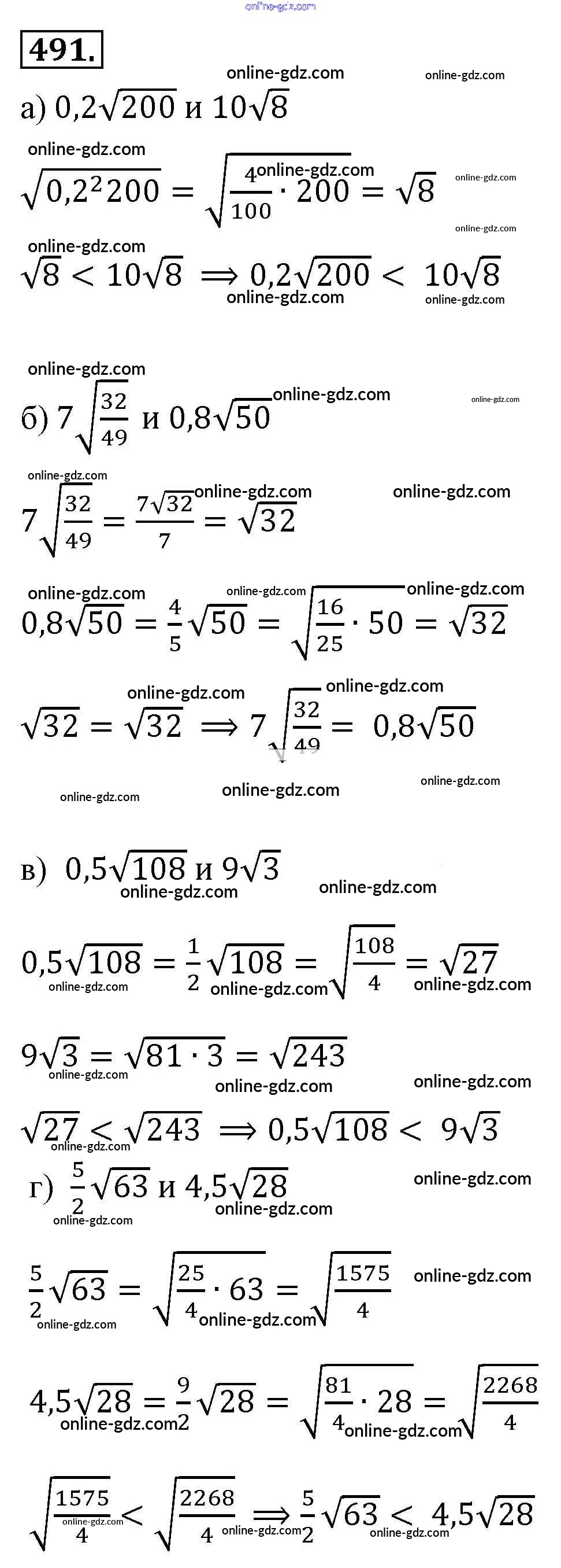 Готовые домашние задания по Алгебре за 8 класс Учебник Макарычев, Миндюк 2016 - Упражнения 491
