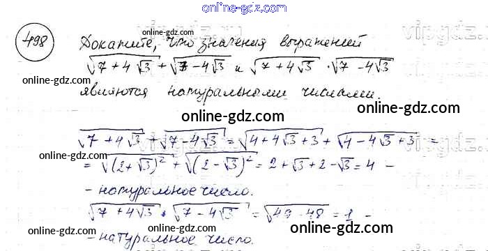 Готовые домашние задания по Алгебре за 8 класс Учебник Макарычев, Миндюк 2016 - Упражнения 498
