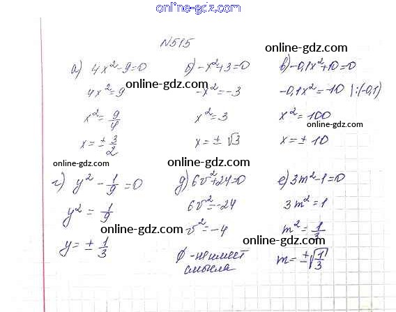 Готовые домашние задания по Алгебре за 8 класс Учебник Макарычев, Миндюк 2016 - Упражнения 515
