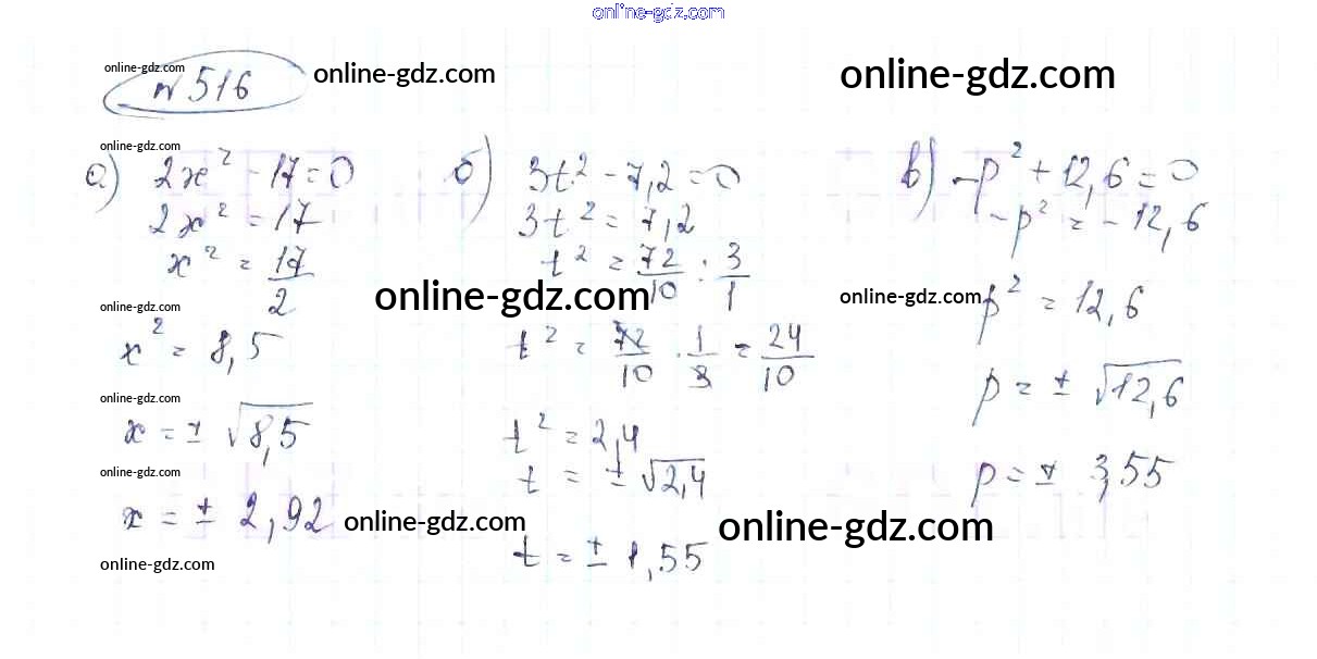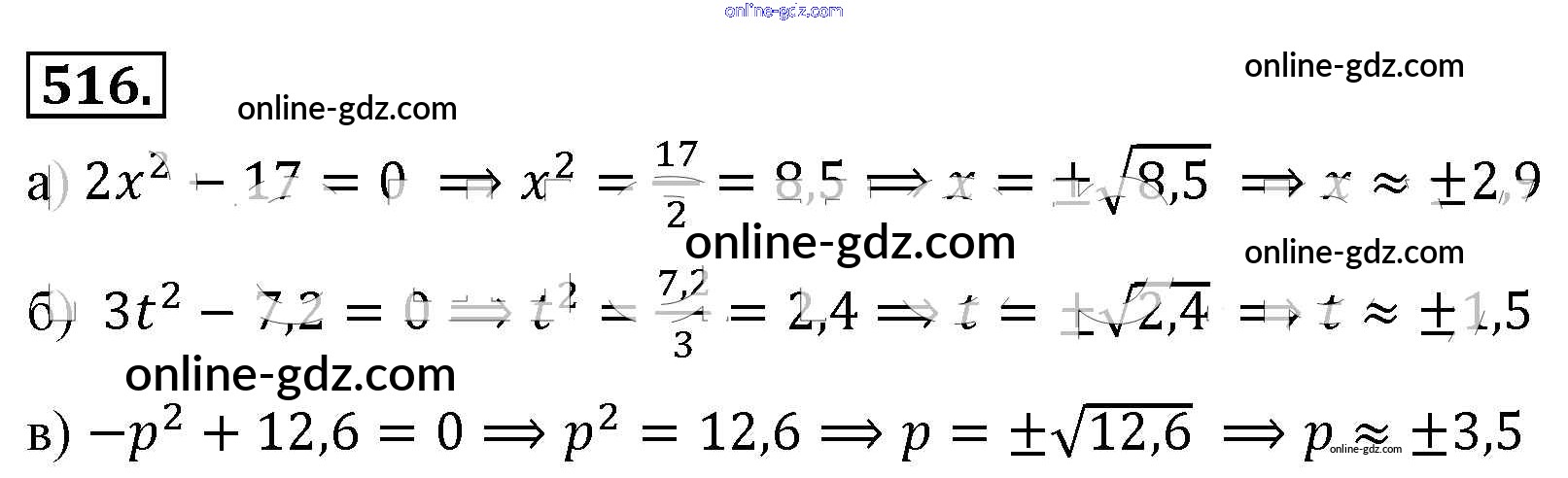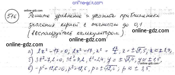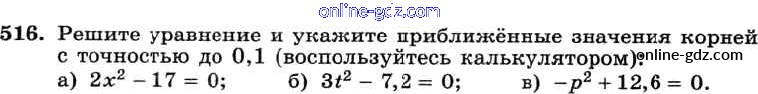 Готовые домашние задания по Алгебре за 8 класс Учебник Макарычев, Миндюк 2016 - Упражнения 516