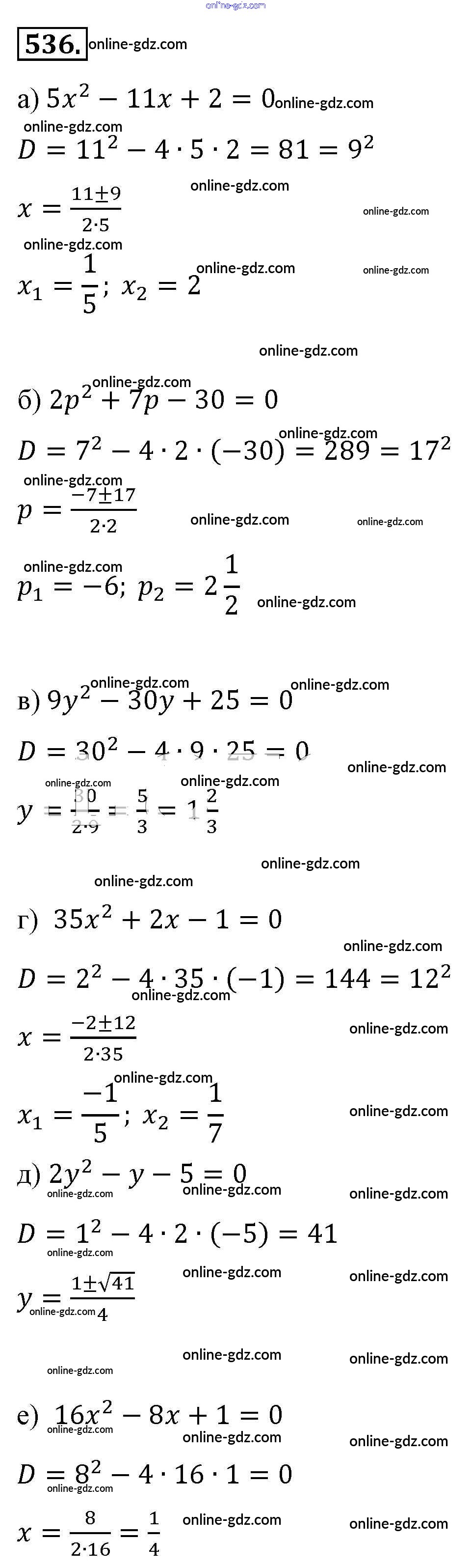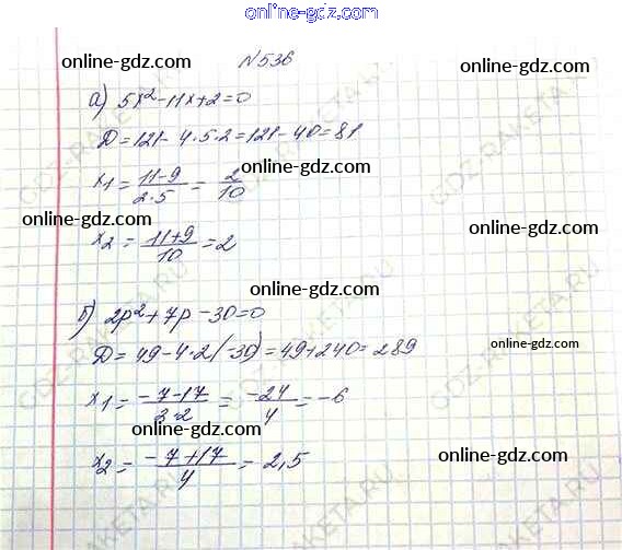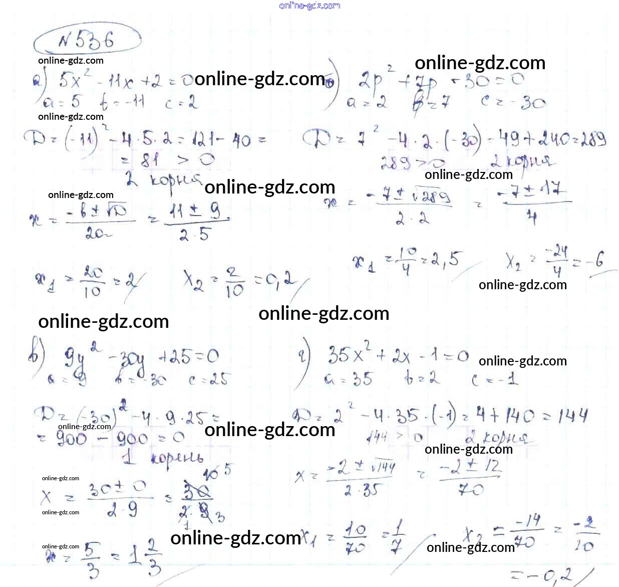 Готовые домашние задания по Алгебре за 8 класс Учебник Макарычев, Миндюк 2016 - Упражнения 536