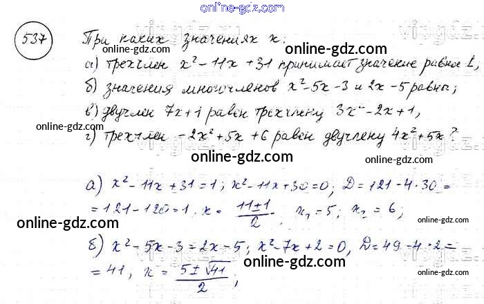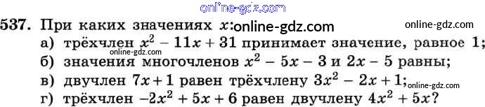 Готовые домашние задания по Алгебре за 8 класс Учебник Макарычев, Миндюк 2016 - Упражнения 537