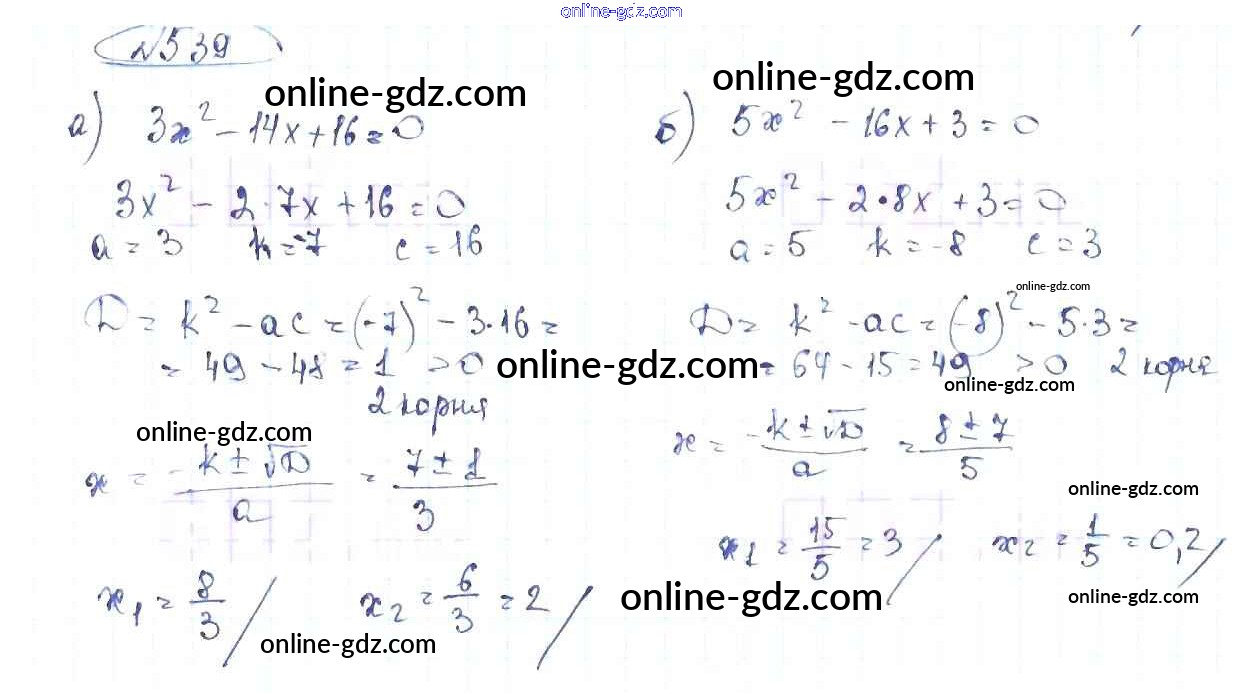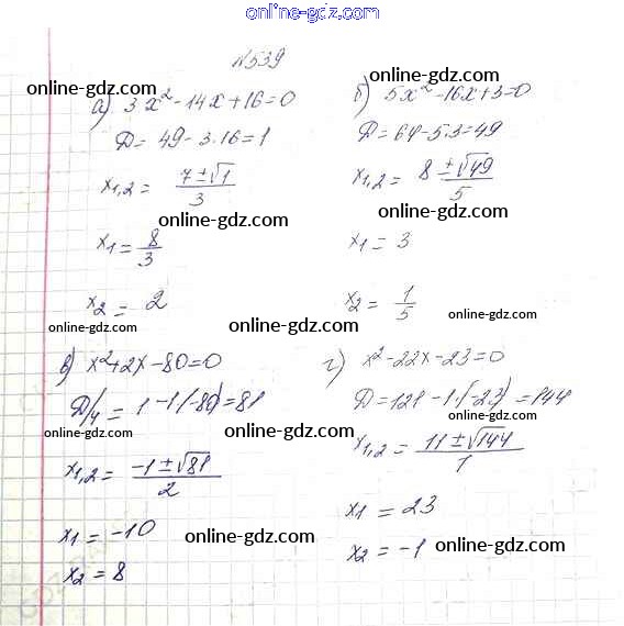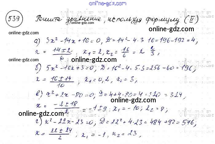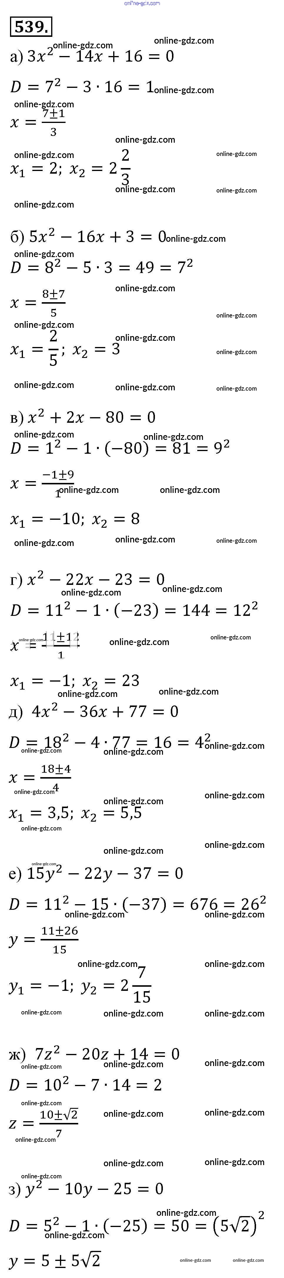 Готовые домашние задания по Алгебре за 8 класс Учебник Макарычев, Миндюк 2016 - Упражнения 539