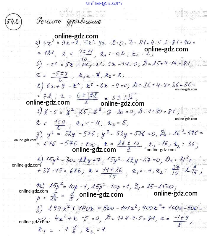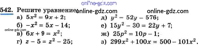 Готовые домашние задания по Алгебре за 8 класс Учебник Макарычев, Миндюк 2016 - Упражнения 542
