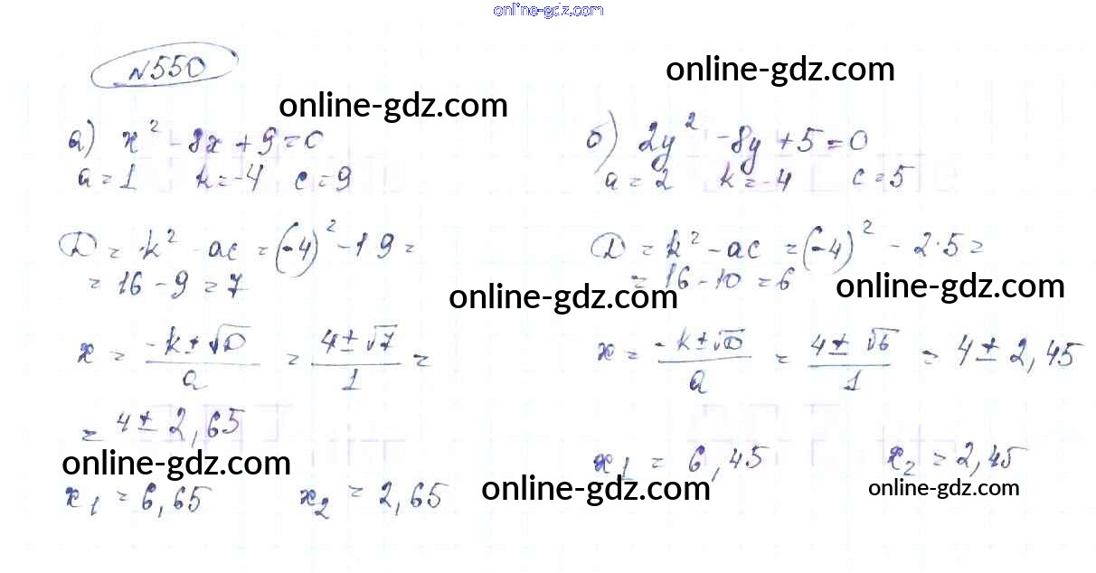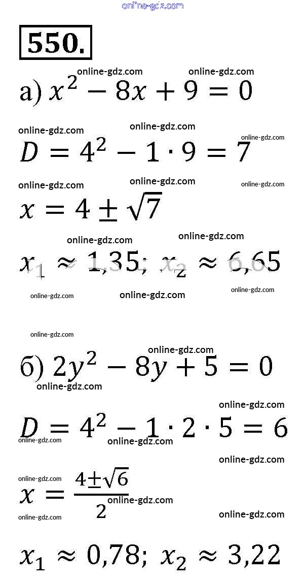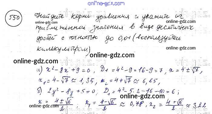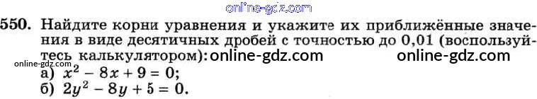 Готовые домашние задания по Алгебре за 8 класс Учебник Макарычев, Миндюк 2016 - Упражнения 550