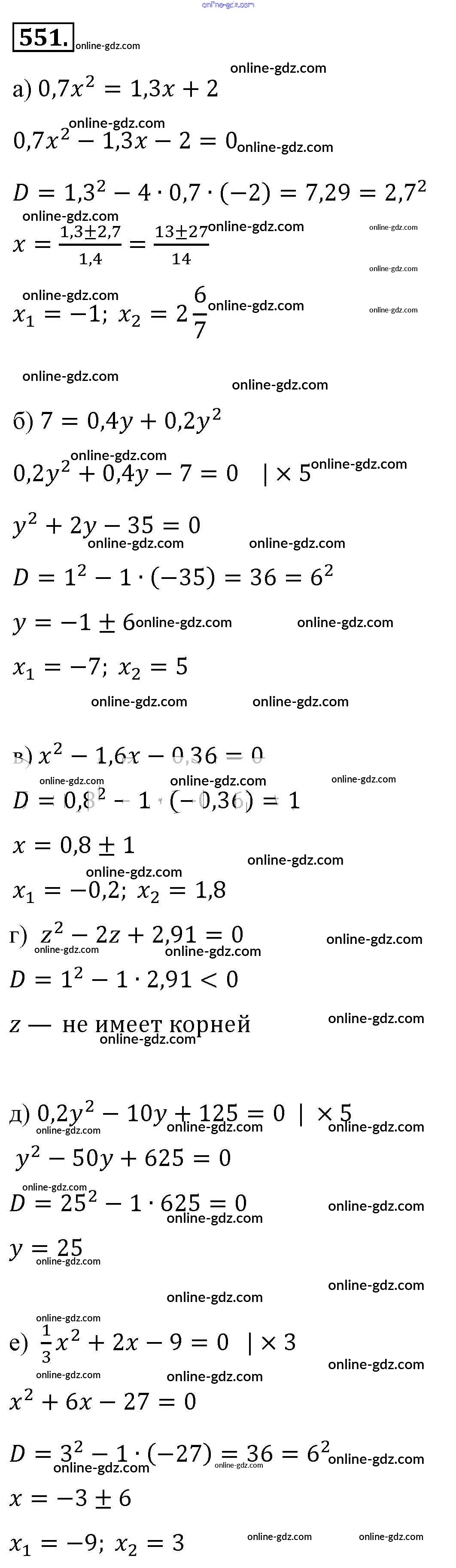 Готовые домашние задания по Алгебре за 8 класс Учебник Макарычев, Миндюк 2016 - Упражнения 551