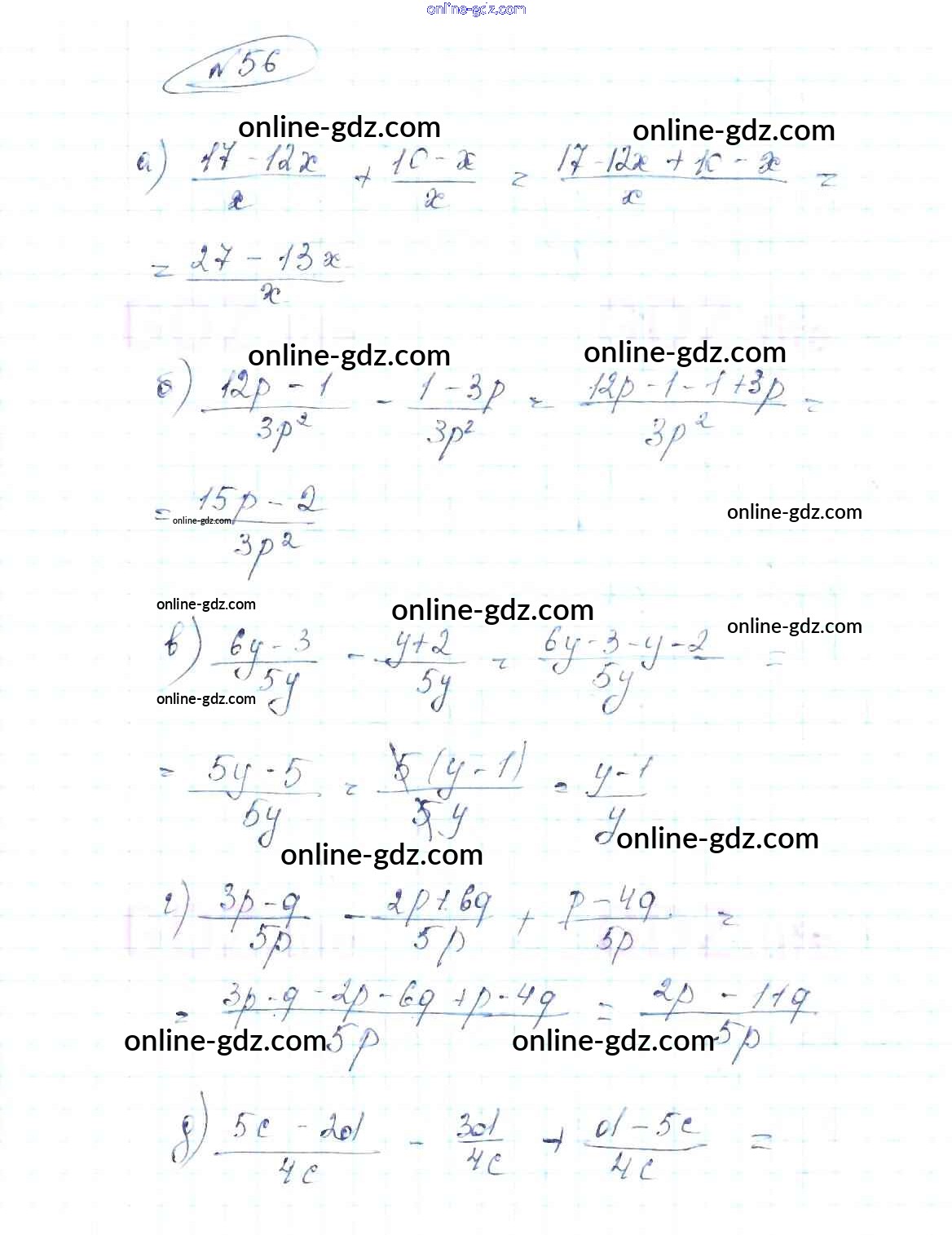 Готовые домашние задания по Алгебре за 8 класс Учебник Макарычев, Миндюк 2016 - Упражнения 56