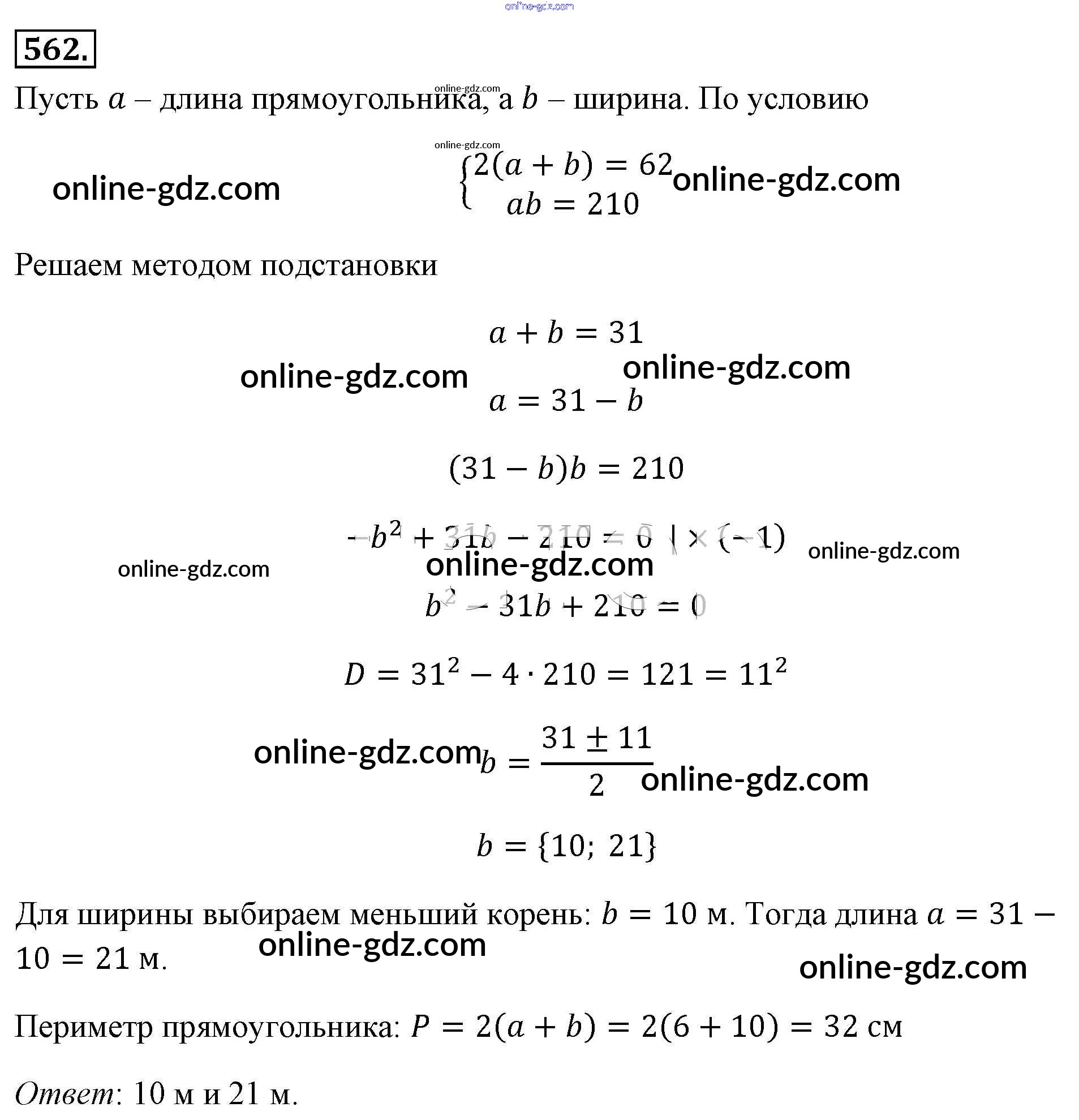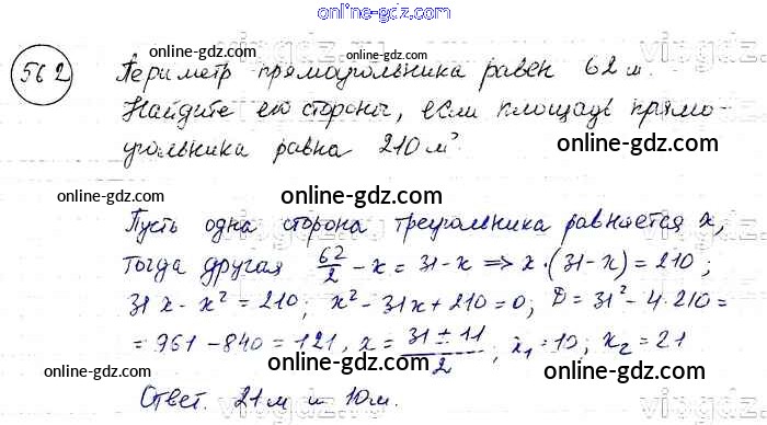 Готовые домашние задания по Алгебре за 8 класс Учебник Макарычев, Миндюк 2016 - Упражнения 562