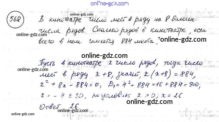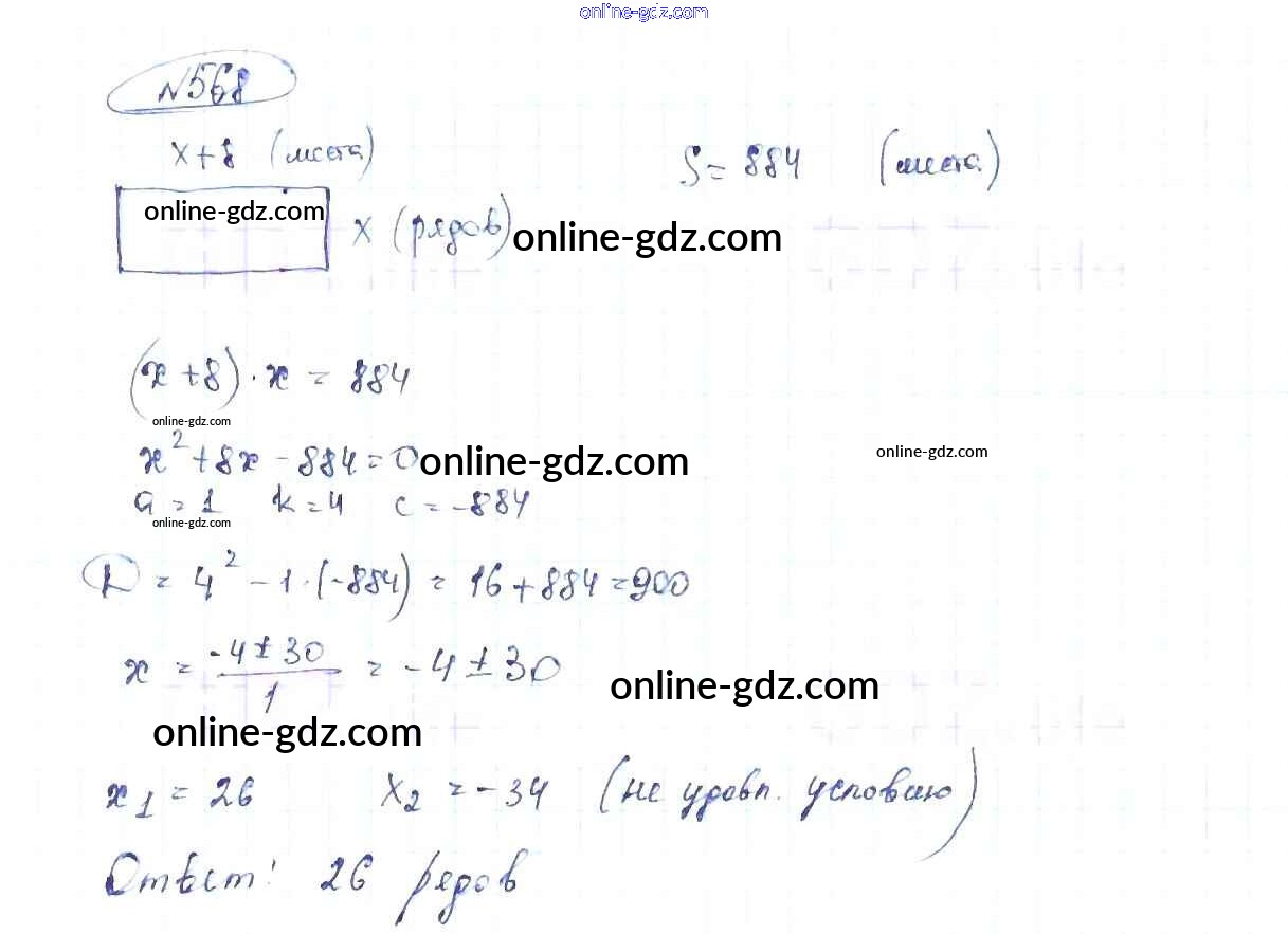 Готовые домашние задания по Алгебре за 8 класс Учебник Макарычев, Миндюк 2016 - Упражнения 568