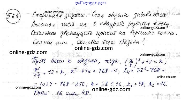 Готовые домашние задания по Алгебре за 8 класс Учебник Макарычев, Миндюк 2016 - Упражнения 569