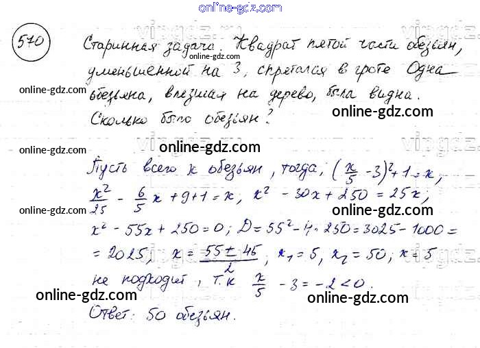 Готовые домашние задания по Алгебре за 8 класс Учебник Макарычев, Миндюк 2016 - Упражнения 570