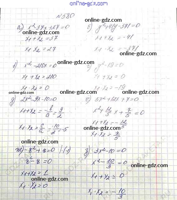 Готовые домашние задания по Алгебре за 8 класс Учебник Макарычев, Миндюк 2016 - Упражнения 580